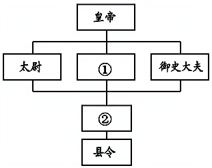 下图的秦朝行政系统简表中①、②分别是 ( )