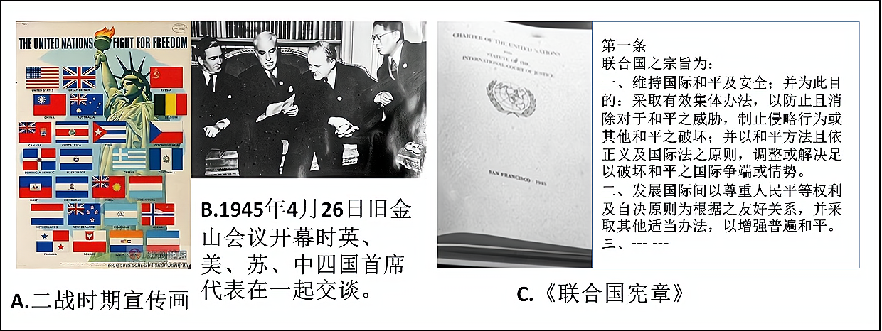 (1)就研究联合国的成立而言,以上三则材料哪些是直接证据,哪些是间接证据?(填写字母)。(6分)