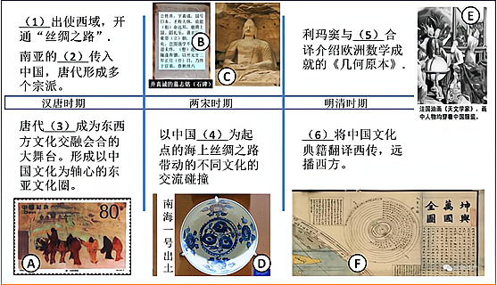 (1)根据提示,完成《中外经济文化交流展板》(12分)
