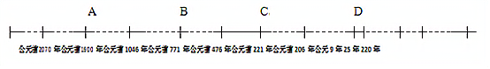 秦王扫六合,建立第一个大一统帝国的时间在下列年代尺的哪一位置( )