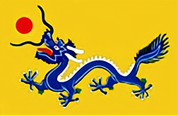 以正黄色为底,青色飞龙居中,象征大清皇帝;青龙吞戏赤色玉珠,寓意“普天之下,莫非王土”。