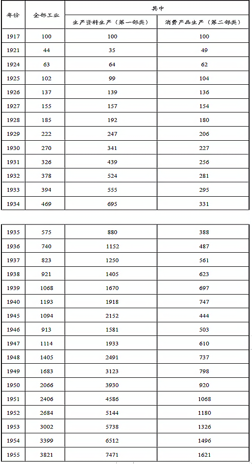 1917—1955年工业总产值发展速度(苏俄 苏联)(对比:1917年的百分比)