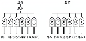 (1)根据材料一,分析图中明代所示政府构架演变的时间及原因。(4分)