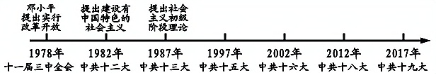 (1)请根据年代尺的提示,列出1978年以来中国共党确立的科学理论的名称。(4分)