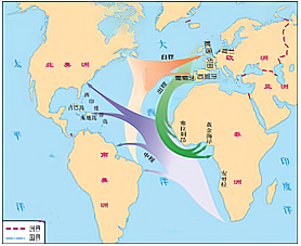 (1)图中所示航程的路线呈三角形,故这个贸易被称为“”(2分)。