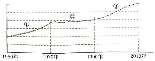 如图是1950—2010年美国国内生产总值变化曲线图。下列表述对图中③时段解读正确的是( )