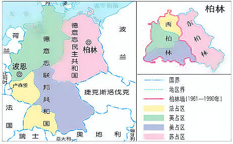 第二次世界大战后初期,美国为了遏制苏联和其他社会主义国家的发展,开始推行冷战政策。对下面《四国分区占领德国示意图》的解读,正确的是( )
