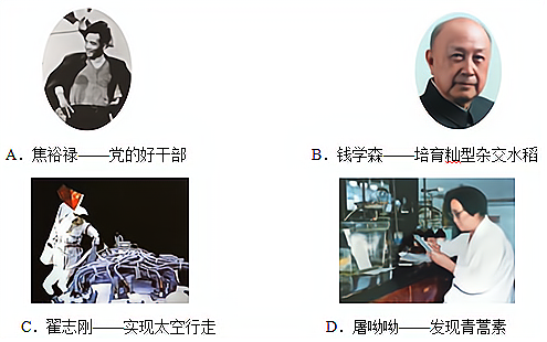 在新中国的各个建设时期,全国各条战线上涌现出了大批英雄模范人物。下列各项,英雄模范人物与其贡献对应不正确的是( )