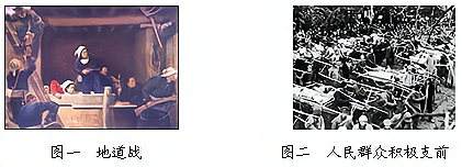 图一:1937年夏,日本悍然发动全面侵华战争。中国军队奋起抵抗,全民族抗战的局面开始形成。中国共产党领导的八路军、新四军深入敌后,放手发动群众,建立抗日根据地,抗击日本侵略者。根据地军民以主力部队和民兵为骨干,以广大群众为基础,展开群众性的人民游击战争,创造了麻雀战、地道战、地雷战、破袭战等战法,为抗日战争的胜利作出了重要贡献。 图二:1946年6月,国民党向解放区展开大规模的进攻,全面内战爆发。1948年秋开始的辽沈、淮海、平津三大战役,共歼灭和改編国民党军队154万余人,基本推毁了国民党的主要军事力量。1949年4月,人民解放军横渡长江,占领南京,结束了国民党在大陆的统治。中国共产党代表中国最广大人民的根本利益,得到了广大民众的支持。取得了解放战争的胜利。 (1)图二的照片属于史料类别中的哪一类?(1分) |