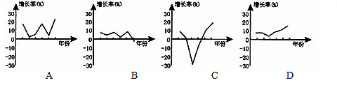 下列图示反映了我国社会主义建设时期国内生产总值(GDP)增长率的变化。其中能够与1959—1964年状况相对应的是