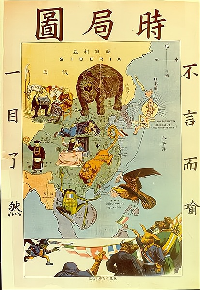 1895年甲午中日战争以清政府的战败而结束。一位爱国志士画了一幅中国疆域的《时局图》。它是目前所能见到的中国最早的一幅报刊漫画。 |