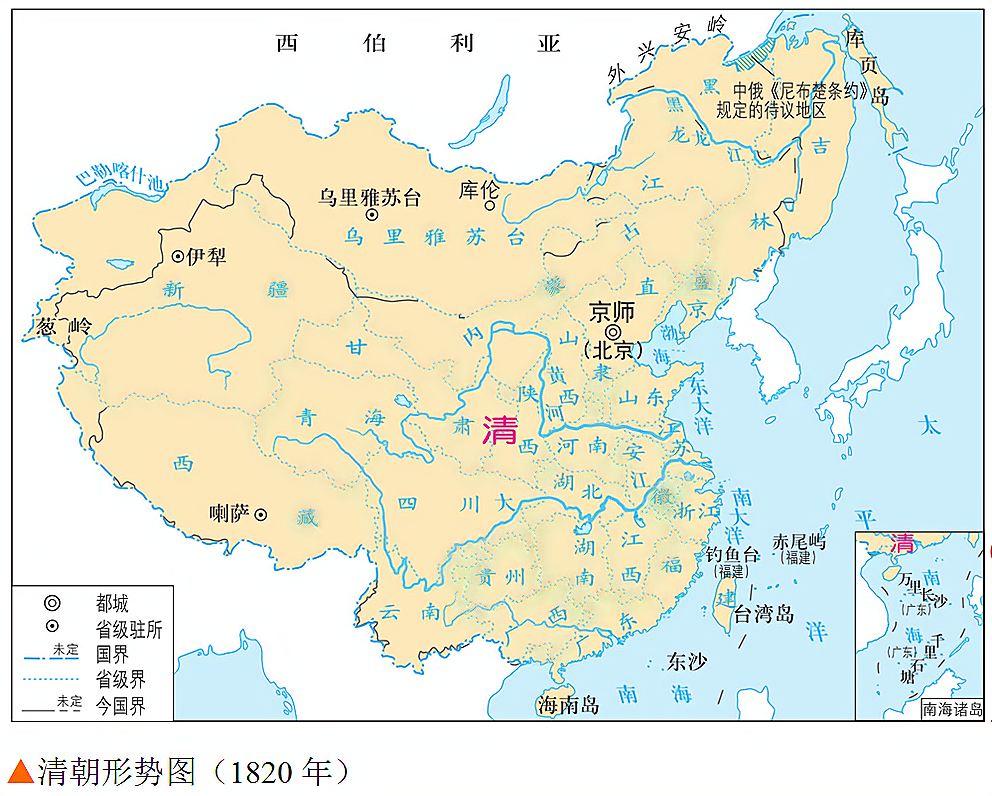 (2)结合上图和所学,举例说明清政府经略边疆的举措,简述这些举措的历史意义。(4分)