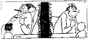 (2)历史证明了漫画作者的惊人判断力。结合材料二与所学,指出图中二人分别代表的国家,并简述判断依据。(5分)
