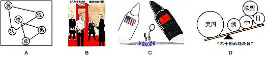 历史漫画或历史示意图能生动的再现历史。下列漫画和示意图能反映当今世界政治格局的是( )
