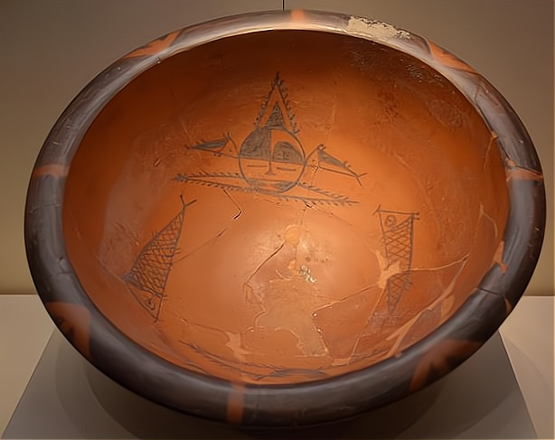 馆藏陕西西安半坡出土的彩陶人面鱼纹盆