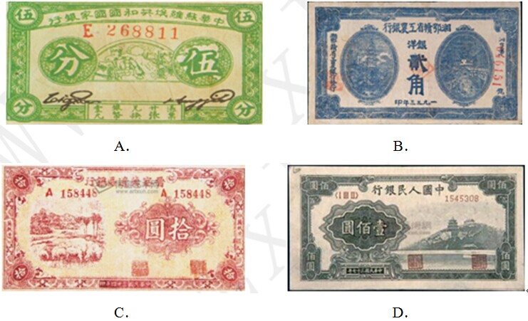 中国共产党历来重视根据地的经济建设。图4所示的纸币中,发行于抗日根据地的是( )