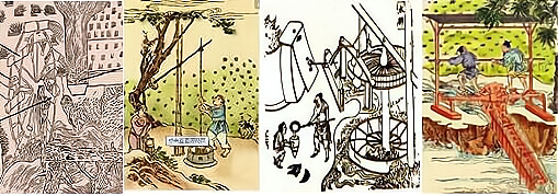 水能利物,轮乃曲成。升降满农夫之用……终夜有声。