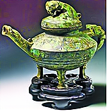 黛玉进入“荣禧堂”……大紫檀雕螭案上设着三尺多高的青绿古铜鼎,悬着待漏隋朝黑龙大画……一边是玻璃盆。