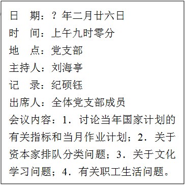 下图(图7)是从旧货市场收购的民间资料,为某橡胶厂党支部会议记录,其年份模糊不清,结合所学知识判断该记录可能写于( )