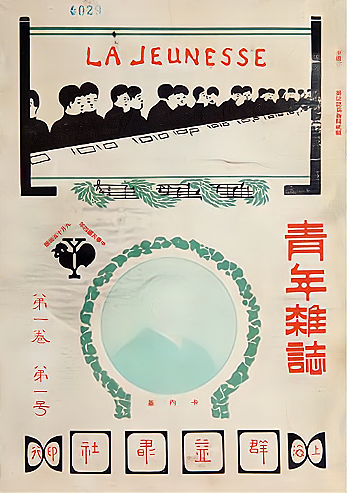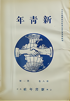 图1 1915年《青年杂志》创刊号封面 图2 1920年《新青年》第8卷第1号封面