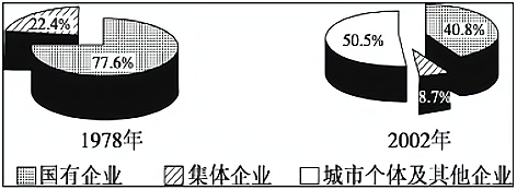 图2 1978年和2002年我国工业总产值中各类经济成分的比重