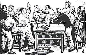 问大唐天子太宗皇帝……为甚(杀兄)弟于前殿,囚慈父于后宫?(太宗)闷闷不已,如杵中心……争答不得。