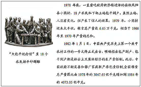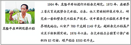 (1)据材料一、二,归纳在粮食生产问题上农业科学家、农民、党和政府各采取的方案。(6分)这些方案取得的成效分别是什么?(6分) (2)结合所学知识,概括上述成效都对我国成功解决人民日常生活中的哪一方面问题起了重要作用。(3分)