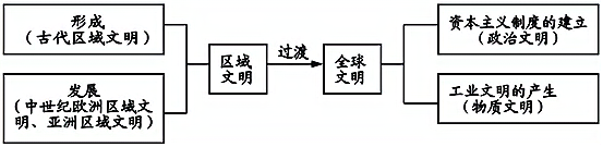 (3)根据材料并结合所学知识,指出哪些因素推动了“区域文明”向“全球文明”的过渡,并以英国(或美国)为例说明“全球文明”在“政治文明”和“物质文明”两个方面的具体表现。(6分) 材料四 当今世界已经成为你中有我、我中有你、命运与共、休戚相关的命运共同体,国际力量对比在此消彼长中朝着相对均衡的方向发展,文化在综合国力竞争中的地位越来越突出。个别国家的“背约”“退群”“筑墙”,并不能扭转国际经济社会文化联系日益频繁和密切的现实,并不能违背全世界人民对“和平、发展、合作、共赢”的共同理想追求。割裂与国际社会的交流合作,只会削弱自身的“软实力”。
