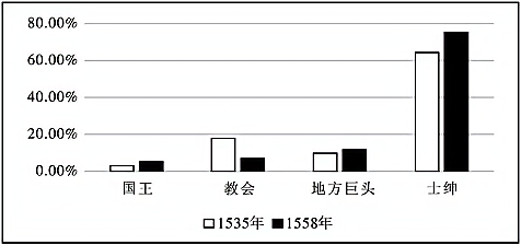 1535—1558年英国诺福克郡庄园财产分布对比图
