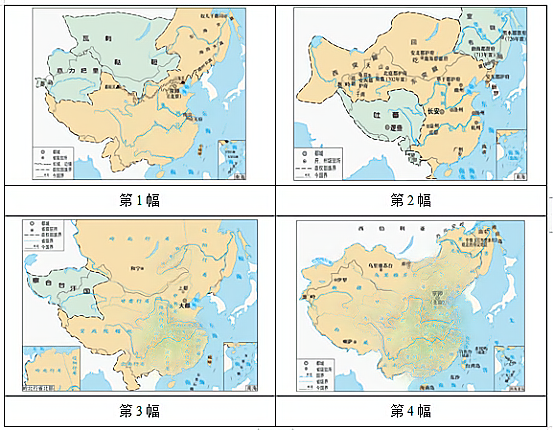 四幅图片分别是我国古代某四个统一王朝的全图。