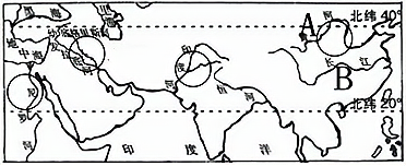 (1)依据材料一概括农业对文明的作用。观察地图,指出早期文明中心地理环境的共同点以及A.B两处先民培育的农作物。(4分)