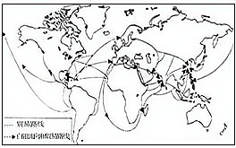 图2 15—19世纪世界主要贸易路线和白银流向示意图