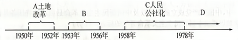(3)结合所学知识,指出材料三示意图中B和D的内容。(2分)请用一句话概括该示意图的主题。(1分)