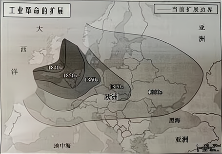 图3 工业革命在欧洲的扩张示意图
