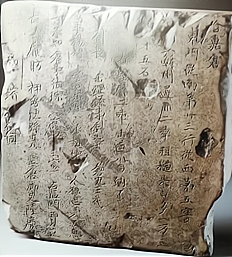 铭砖文字如下:含嘉仓东门,从南第廿三行,从西第五窖。合纳苏州通天二年租糙米白多一万三十五石。耗在内,右圣历二年正月八日纳了。典刘长正纲录事刘爽仓史王花监事扬智丞吕彻丞赵瓖令孙忠令思寺丞知仓事张琮左监门王宜右监门贾立长上庞防押仓使孙亮监仓御史陆庆卿。