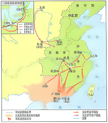 (2)历史学家往往分阶段研究历史,结合所学知识,说明材料②为何将1923—1937年的历史划分为两个阶段。将下面三幅地图的序号正确填入时间轴上A.B.C的方框内。(5分)