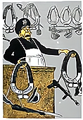 漫画可形象艺术地反映历史。下图所示漫画选自《苏联政治讽刺画选集》,描述的是 马歇尔计划 开张时,就为西欧各国提供了专供的套索,套索上还挂着钢盔、刺刀和枪。漫画作者意在表明这一事件 (  )
