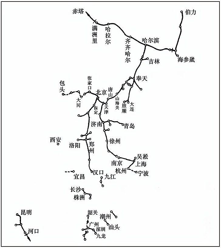 中国铁路图(1911年)(虚线为1911年在建铁路)