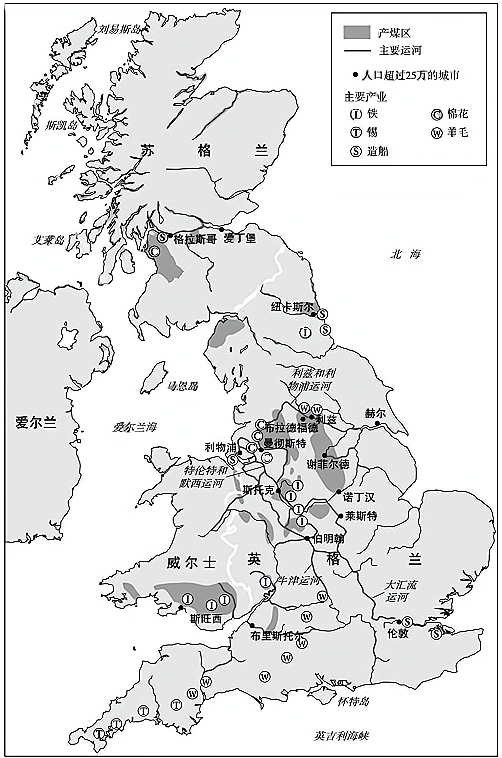 图3 1850年大不列颠工业地图(局部)