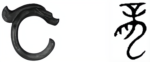 图1 红山文化遗址出土的C形玉龙 图2 甲骨文的“龙”