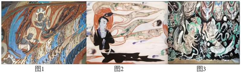 是指佛教传说中的天神。下面壁画中图1是敦煌莫高窟的249窟西魏时期带有西域风格的飞天形象。图2是敦煌莫高窟的296窟北周时期带有中原风格的飞天形象。图3是榆林窟10窟西夏时期带有西夏风格的飞天形象。据此可知( )