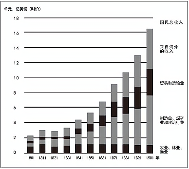 图2 1801—1901年英国各产业国民收入示意图