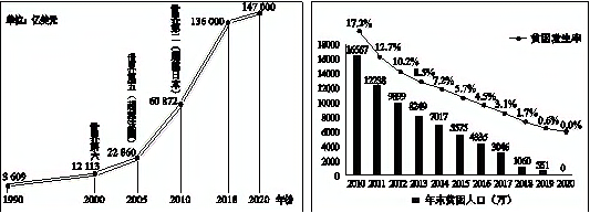图1 中国国内生产总值增长变化 图2 全国贫困人口数量的变化趋势
