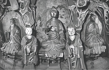 悬空寺三教殿,位于山西大同,始建于北魏太和十五年(公元491年)。殿阁内雕塑中间为佛教创始人释迦牟尼,左边为儒家学派创始人孔子,右边为道家学派创始人老子。