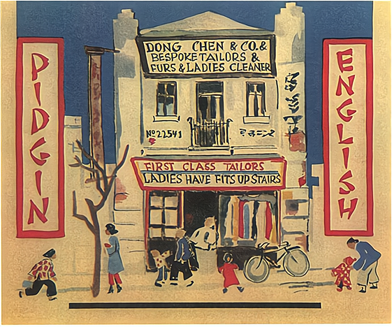 (招牌上的文字)第一流裁缝店,兼卖皮货,太太们楼上请