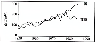1950—1984年苏联、中国粮食产量的比较