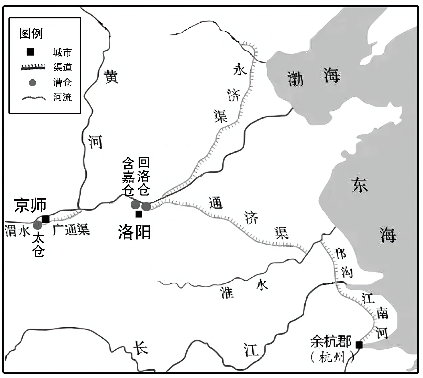 图8 唐朝漕运及漕仓示意图