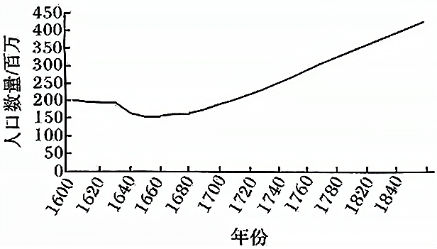 图5 1600—1840年全国人口数量变化