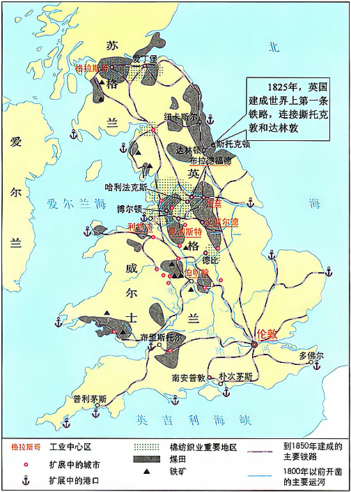 英国工业革命相关情况示意图