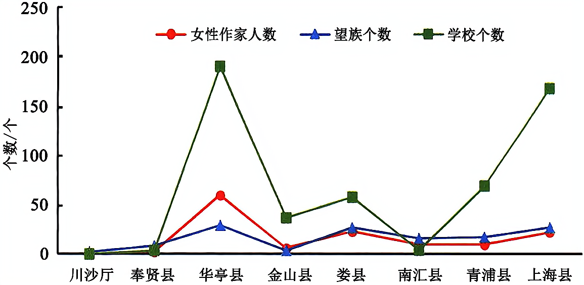 明清松江府各县女性作家人数、著姓望族以及学校的关系